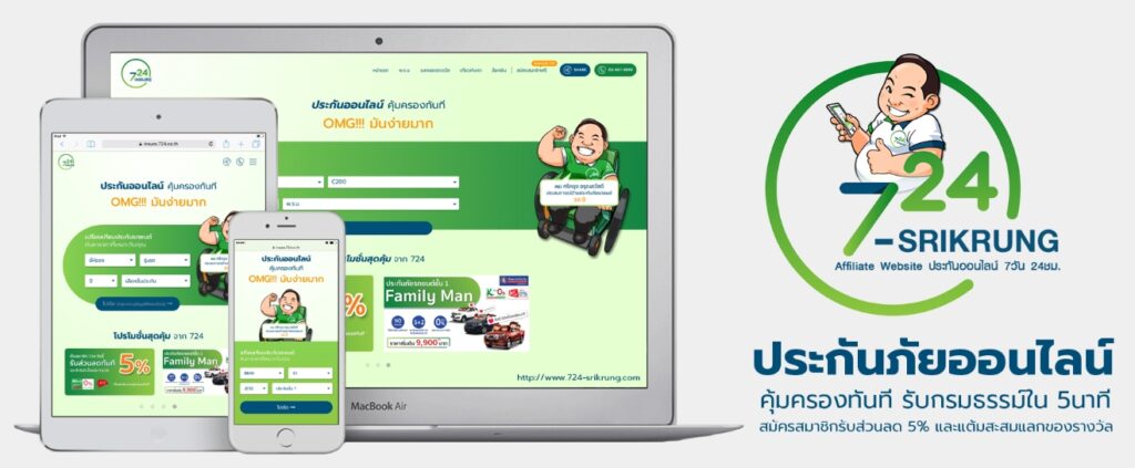 - รับเว็บไซต์สำหรับขายสินค้าประกันภัยออนไลน์ได้ตลอด 7 วัน 24 ชม. insure.724.com