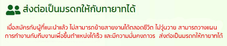 - ไม่บังคับยอดขาย ทำมากได้มาก ทำน้อยได้น้อย