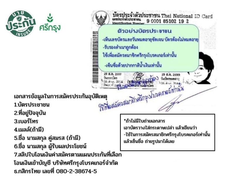 หรือเพียงแค่นำบัตรประชาชนวางบนกระดาษสีขาว เขียนคำว่า “สำหรับใช้สมัครสมาชิกศรีกรุงโบรคเกอร์เท่านั้น”